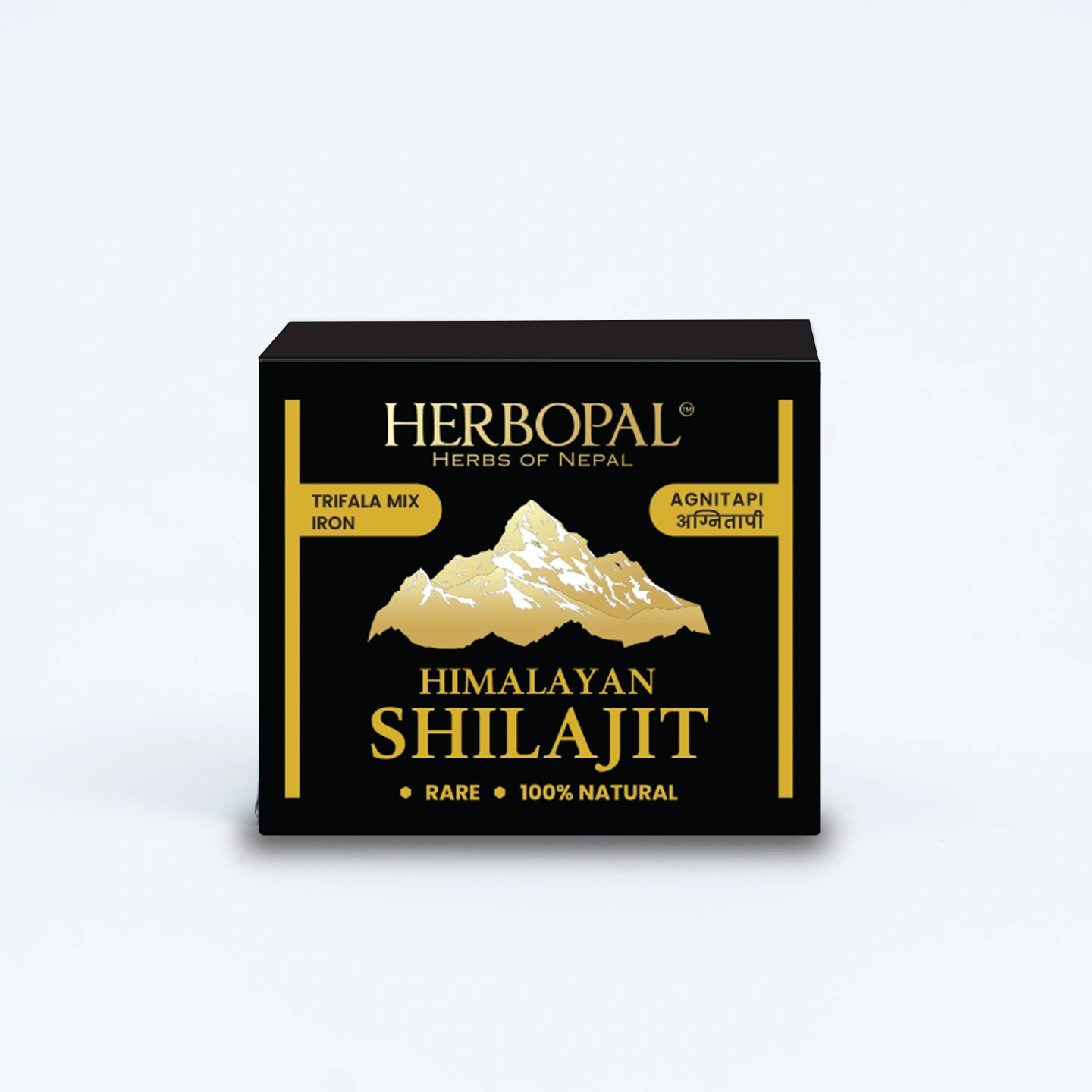 Shilajit is a thick, tar-like natural substance formed over centuries from decomposed plants and minerals trapped in rocks. Found in the high Himalayas, it oozes out of mountain cracks due to heat and pressure. Agni Taapi Shilajit is fire-purified and blended with Triphala, a powerful Ayurvedic trio of Harro, Barro, and Amala, enhancing its cleansing and rejuvenating effects.
